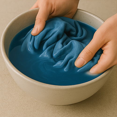 Submerge your fabric for 30-60 minutes. The longer you soak the richer the colour.